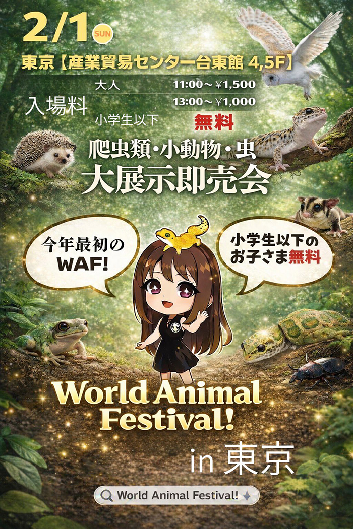 2月1日(日)東京都立産業貿易センター台東館で開催のワールドアニマルフェスティバルin東京へ参加致します。 「これは持って来て!」等の出品リクエストがありましたらお問い合わせよりお申し付けください。(※出品リクエストは準備の都合上イベント開催の3日前までにお願いいたします。) ▼営業日&出店予定イベントカレンダー▼ 下記日程は予定であり予告なく変更する場合がございます。 詳しくは直接店舗まで直接お問い合わせくださいませ。