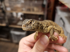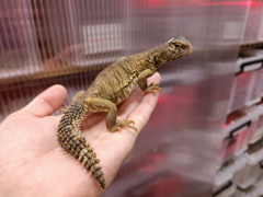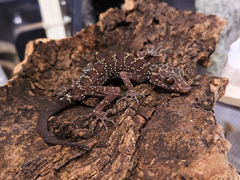 | イラン、イラク等に分布する大型のアジアトカゲモドキ。イーラムのローカリティは薄く明るい体色も特徴的でローカリティの中でも美しく人気があります。その容姿通りにヒョウモントカゲモドキに近縁な種類で色彩こそ似るもののスラっと長い四肢に大きな頭部に尾は長くオバケの名に相応しい迫力のある特徴的なフォルムで大きく育った個体は圧巻の存在感が表れます!! |