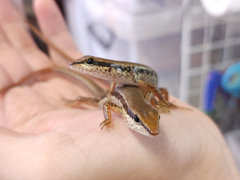 | バンカ産マラヤンブラッドのファーミングCBベビー。バンカ産のマラヤンの赤くなる個体はバンカレッドと称され特に高い人気を誇ります。バンカ産のマラヤンはパターンの入り方も特徴的な個体が多くベージュ部分の斑紋の面積が狭く赤くなる地色部分が広くなる個体が多くそれが赤みの強い個体の多い謂れの一つでもあります。 |