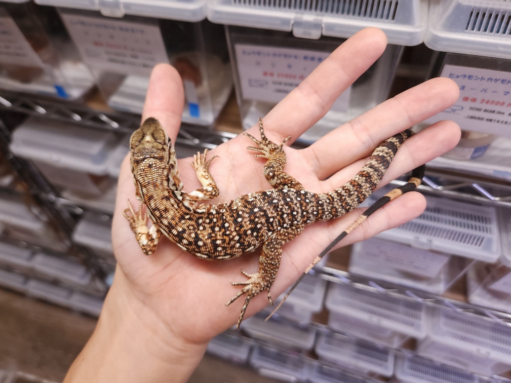 | イラン、イラク等に分布する大型のアジアトカゲモドキ。イーラムのローカリティは薄く明るい体色も特徴的でローカリティの中でも美しく人気があります。その容姿通りにヒョウモントカゲモドキに近縁な種類で色彩こそ似るもののスラっと長い四肢に大きな頭部に尾は長くオバケの名に相応しい迫力のある特徴的なフォルムで大きく育った個体は圧巻の存在感が表れます!! |