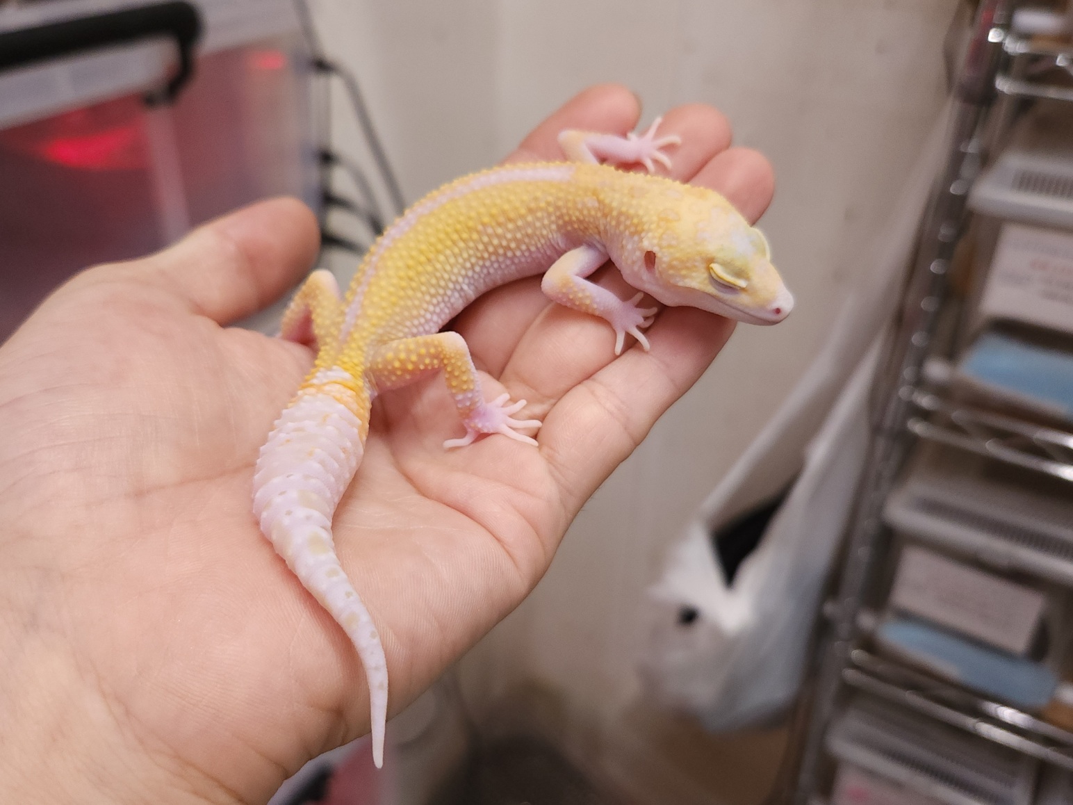 | キャラメルとの相性抜群ホワイトアウトコンボのキュートな個体!白み勝ちなホワイトアウトの色彩にキャラメルアルビノの上品な色彩がいい感じに相まって光沢のある大変美しい色彩に仕上がっております。黒目の際立つキュートな顔つきもグッド! |